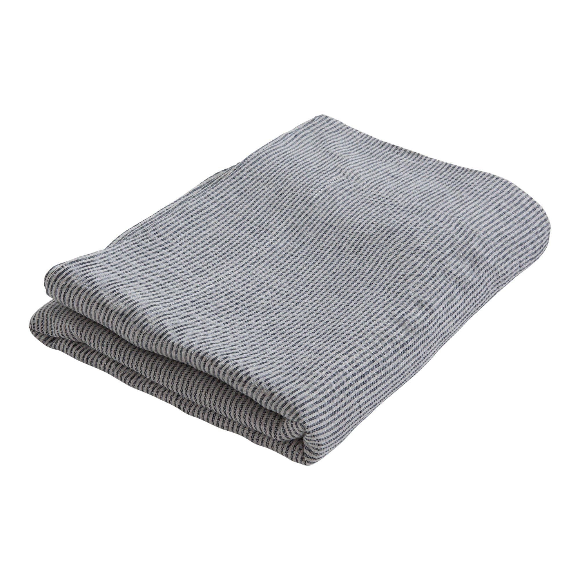 Sid Stripe 100% Linen Tablecloth | French Blue