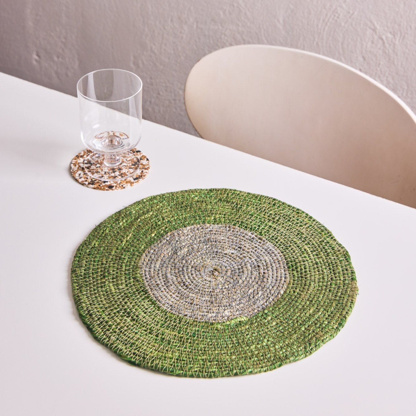 Expanding our collection of natural materials, we introduce our stunning seagrass placemats. This decorative two-piece set is handcrafted from twisted and dyed seagrass, creating a unique work of art.