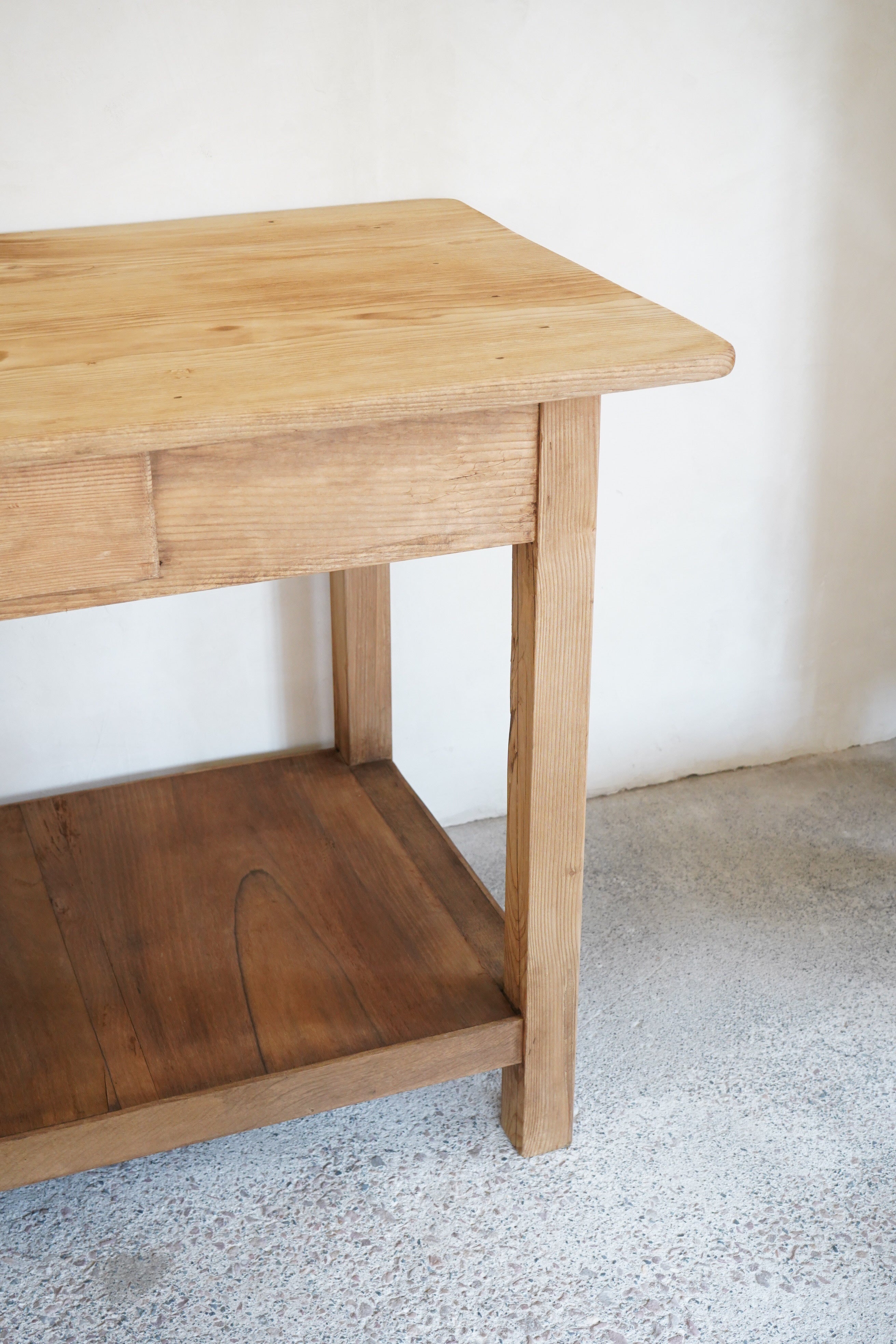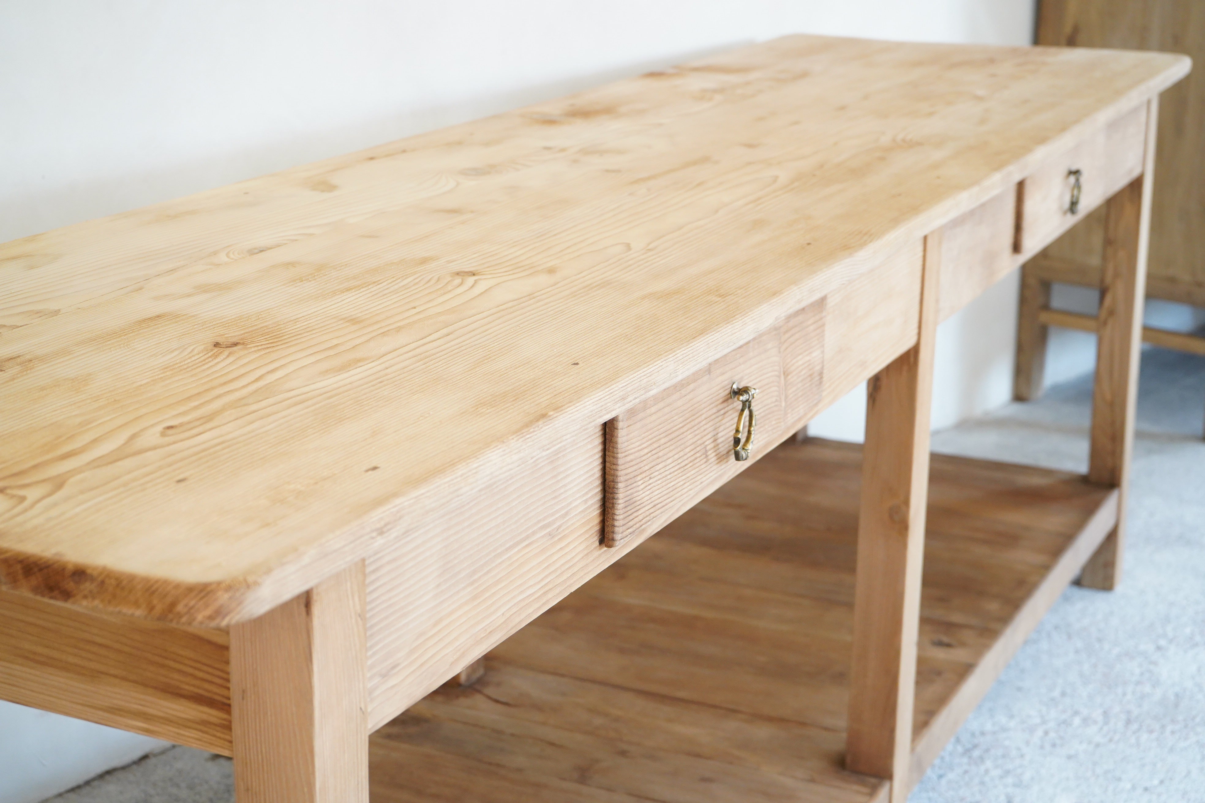 Large French prep table traditionally made, with a chunky pine top and oak plank base. Would make a great kitchen unit